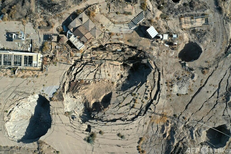 【11月6日 AFP】死海(Dead Sea)に臨むイスラエルの観光都市、エンゲディ(Ein Gedi)。スパリゾートとして全盛期だった1960年代には、温水プールで汗を流した行楽客がそのまま塩辛い死海に滑り込んでいた。だが今、その岸辺は穴だらけになっている。