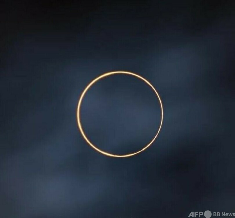 不思議なことに、金環日食が始まろうとした時、状況が一変し、太陽が出ました。その瞬間、董書畅さんがカメラを向けて、この「金の指輪」を撮影しました。(c)CGTN Japanese/AFPBB News