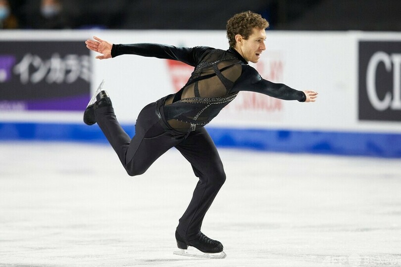 同胞のジェイソン・ブラウン(Jason Brown)が約13点差の94.00点で2位、カナダのキーガン・メッシング(Keegan Messing)が93.28点で3位に続いた。日本勢は田中刑事(Keiji Tanaka)が78.83点で6位、山本草太(Sota Yamamoto)が78.78点で7位につけた。(c)AFP/Laurie Nealin