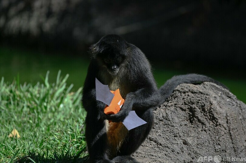 【10月30日 AFP】中米グアテマラの首都グアテマラ市のアウロラ(La Aurora)動物園で29日、ハロウィーンと死者の日を祝い、動物たちに怖い装飾を施したフルーツや、箱入りの好物がプレゼントされた。(c)AFP