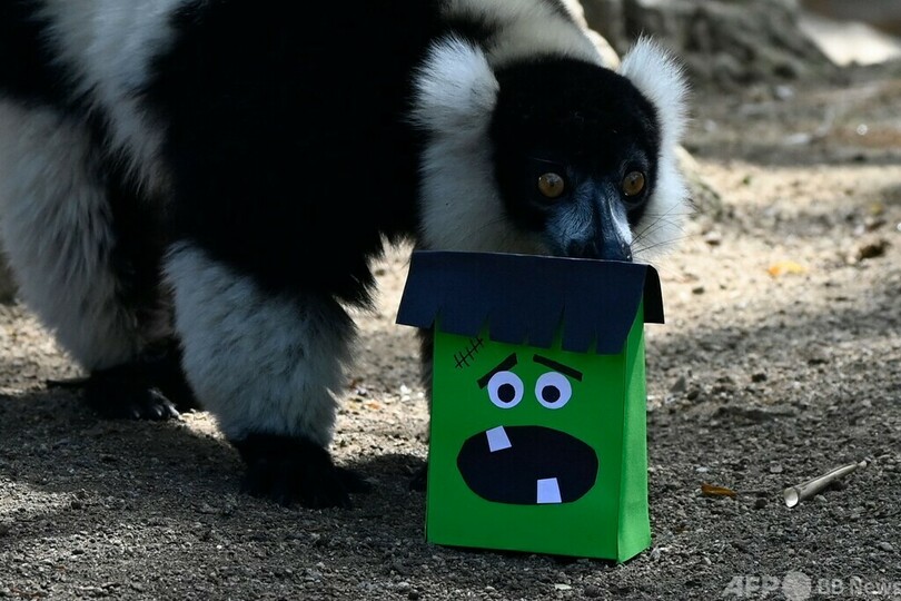 【10月30日 AFP】中米グアテマラの首都グアテマラ市のアウロラ(La Aurora)動物園で29日、ハロウィーンと死者の日を祝い、動物たちに怖い装飾を施したフルーツや、箱入りの好物がプレゼントされた。(c)AFP