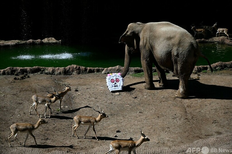 【10月30日 AFP】中米グアテマラの首都グアテマラ市のアウロラ(La Aurora)動物園で29日、ハロウィーンと死者の日を祝い、動物たちに怖い装飾を施したフルーツや、箱入りの好物がプレゼントされた。(c)AFP