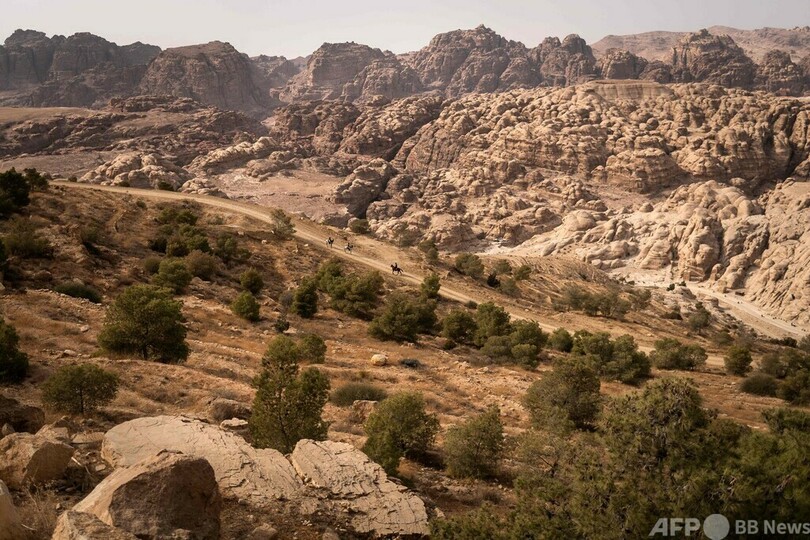 スタート地点のワディラムは、1962年の大作歴史映画『アラビアのロレンス』で主演のピーター・オトゥール(Peter O’Toole)の乗馬シーンが撮影された。ゴール地点のペトラのエルカズネ(宝物殿)は、1989年の大ヒット映画『インディ・ジョーンズ/最後の聖戦(Indiana Jones and the Last Crusade)』のロケ地となった。(c)AFP/Kamal Taha
