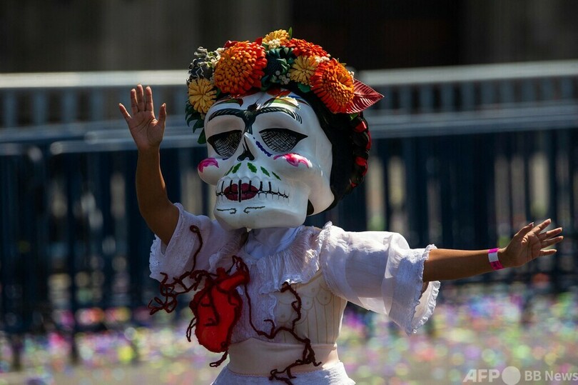 【11月1日 AFP】メキシコの首都メキシコ市で10月31日、「死者の日(Day of the Dead)」のパレードが開催され、巨大な骸骨や色鮮やかな衣装を着た人々、マリアッチの音楽が街を埋め尽くした。昨年のパレードは、新型コロナウイルス流行の影響で中止された。