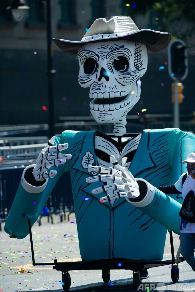 【11月1日 AFP】メキシコの首都メキシコ市で10月31日、「死者の日(Day of the Dead)」のパレードが開催され、巨大な骸骨や色鮮やかな衣装を着た人々、マリアッチの音楽が街を埋め尽くした。昨年のパレードは、新型コロナウイルス流行の影響で中止された。
