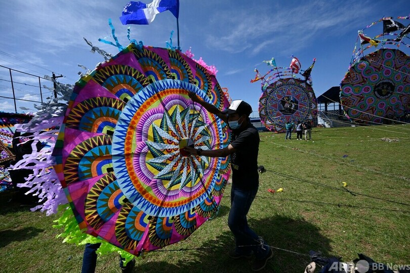 万聖節を祝い空を彩る大型たこ グアテマラ