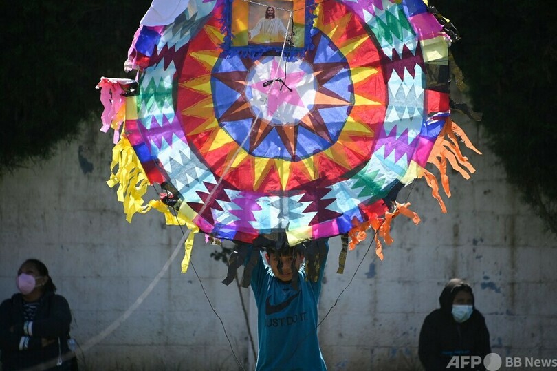 万聖節を祝い空を彩る大型たこ グアテマラ