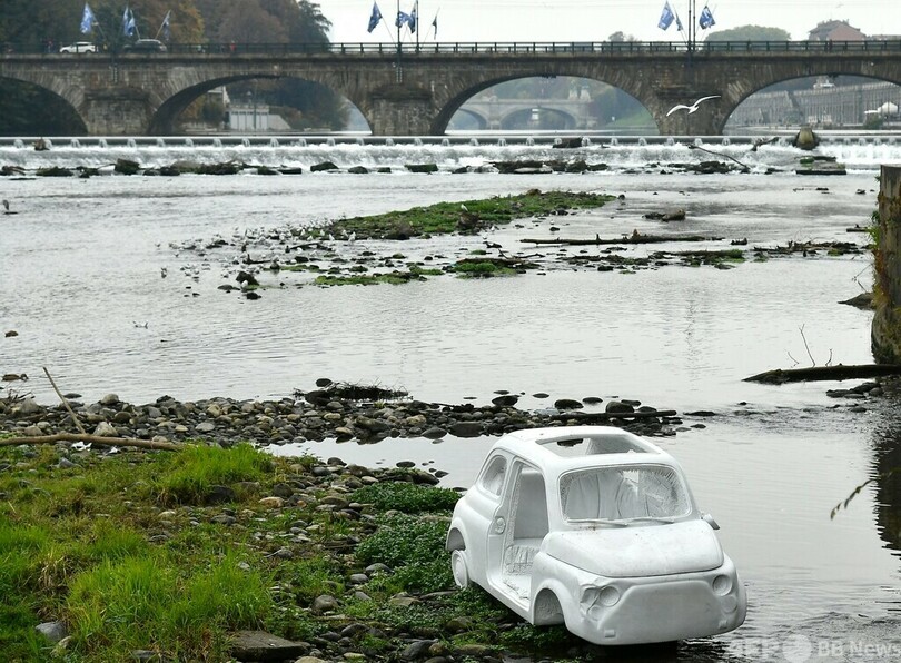 【11月2日 AFP】イタリア・トリノ(Turin)を流れるポー(Po)川の岸辺に、大理石でできたイタリア車「フィアット500(FIAT 500)」が登場した。