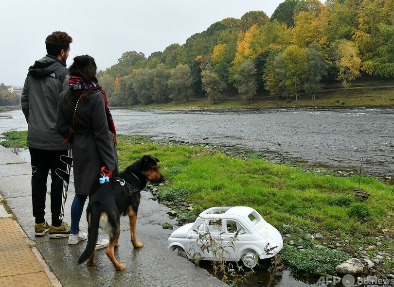 【11月2日 AFP】イタリア・トリノ(Turin)を流れるポー(Po)川の岸辺に、大理石でできたイタリア車「フィアット500(FIAT 500)」が登場した。
