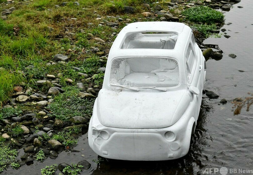 【11月2日 AFP】イタリア・トリノ(Turin)を流れるポー(Po)川の岸辺に、大理石でできたイタリア車「フィアット500(FIAT 500)」が登場した。