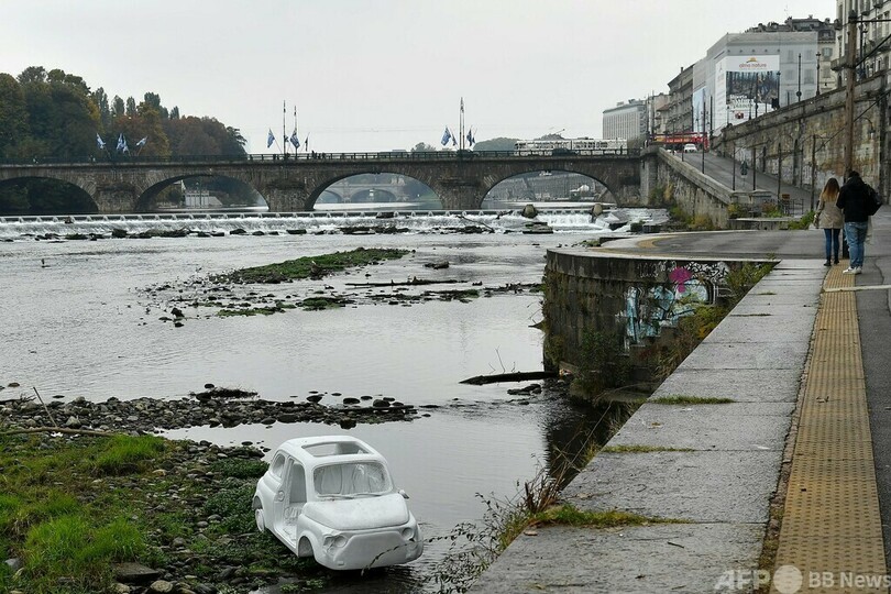 【11月2日 AFP】イタリア・トリノ(Turin)を流れるポー(Po)川の岸辺に、大理石でできたイタリア車「フィアット500(FIAT 500)」が登場した。