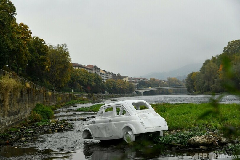【11月2日 AFP】イタリア・トリノ(Turin)を流れるポー(Po)川の岸辺に、大理石でできたイタリア車「フィアット500(FIAT 500)」が登場した。