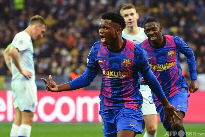 【11月3日 AFP】サッカー欧州チャンピオンズリーグ(UEFA Champions League 2021-22)は2日、グループE第4節が各地で行われ、FCバルセロナ(FC Barcelona)は1-0でディナモ・キエフ(Dynamo Kiev)に勝利した。決勝点を挙げたアンス・ファティ(Ansu Fati)は、ゴールと勝利を離脱したセルヒオ・アグエロ(Sergio Aguero)にささげると話した。
