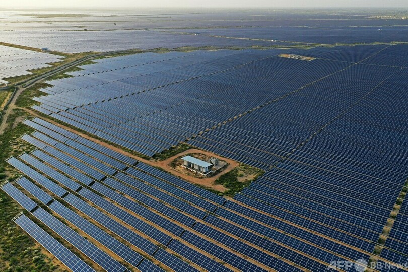 2070年までに排出ゼロ目指すインド、砂漠一面のソーラーパネル
