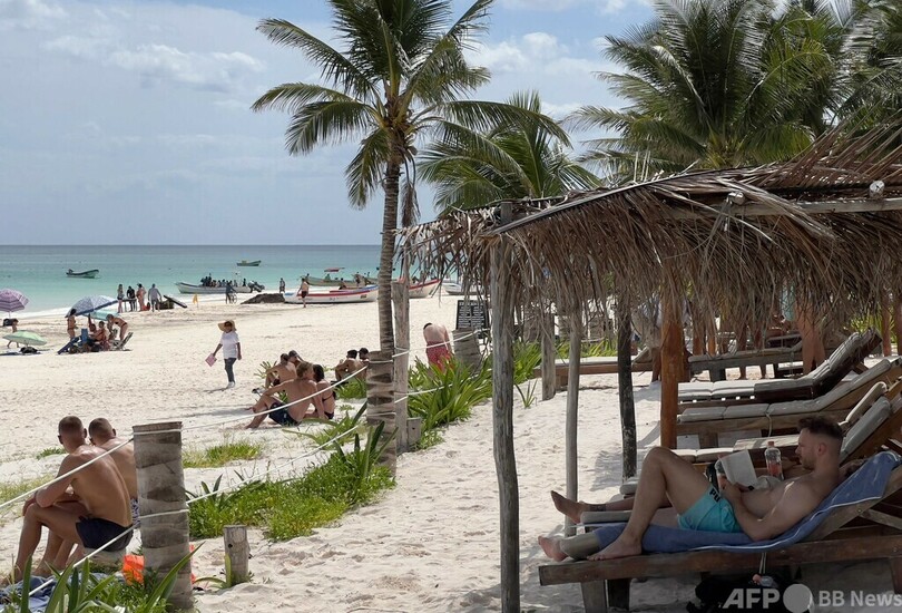 【11月7日 AFP】メキシコ南東部キンタナロー(Quintana Roo)州のカリブ海(Caribbean Sea)沿岸、トゥルム(Tulum)のビーチリゾート。青緑色の海と古代マヤ文明の遺跡を見ようと毎年多くの人が訪れ、メキシコ屈指の観光地となっている。(c)AFP