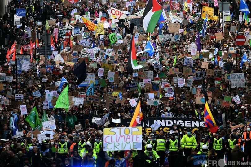 【11月6日 AFP】国連(UN)気候変動枠組み条約第26回締約国会議(COP26)が開催されている英北部グラスゴーで5日、各国首脳に対し気候問題への迅速な対処を求める若者主導の大規模な抗議デモが行われた。デモで演説したスウェーデンの環境活動家グレタ・トゥンベリ(Greta Thunberg)さんは、COP26を「失敗」と呼び批判した。