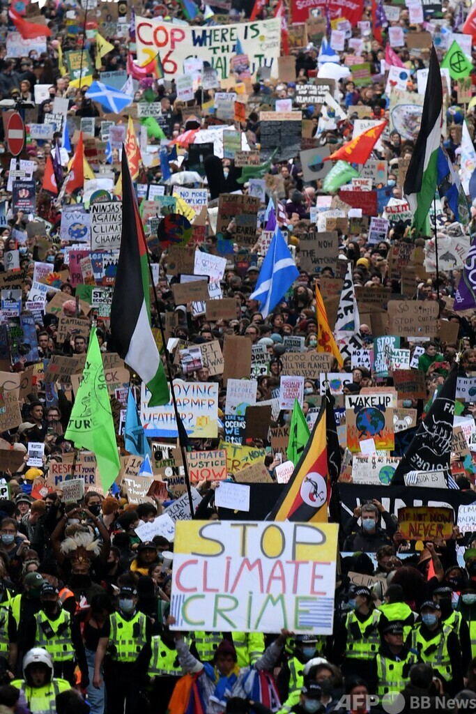 【11月6日 AFP】国連(UN)気候変動枠組み条約第26回締約国会議(COP26)が開催されている英北部グラスゴーで5日、各国首脳に対し気候問題への迅速な対処を求める若者主導の大規模な抗議デモが行われた。デモで演説したスウェーデンの環境活動家グレタ・トゥンベリ(Greta Thunberg)さんは、COP26を「失敗」と呼び批判した。
