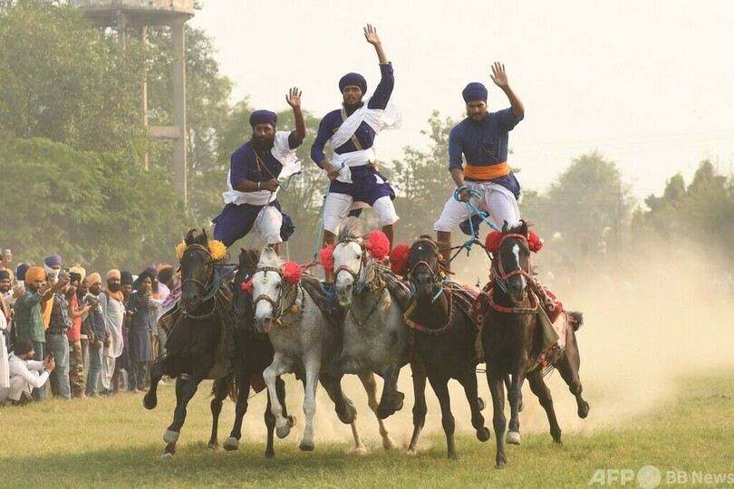 ニュース ライフ 驚異のバランス感覚、シーク教徒の祭典 インド 2021年11月6日 15:56 発信地:アムリツァル/インド [ インド アジア・オセアニア ] このニュースをシェア ‹ › ❮ 21/24 ❯ インド北部アムリツァルで開かれたシーク教の祭り「ファテ・ディバス」で、馬の背に乗って立つシーク教徒の戦士ら(2021年11月5日撮影)。(c)NARINDER NANU / AFP 画像作成中 ! 【11月6日 AFP】インド北部アムリツァル(Amritsar)で5日、シーク教の祭り「ファテ・ディバス(Fateh Divas)」が開かれ、教徒の戦士らが馬の背に乗って立つパフォーマンスを披露した。(c)AFP ライフ 一覧へ> メディア・報道関係・法人の方向け 写真・動画 購入のお問合せ>