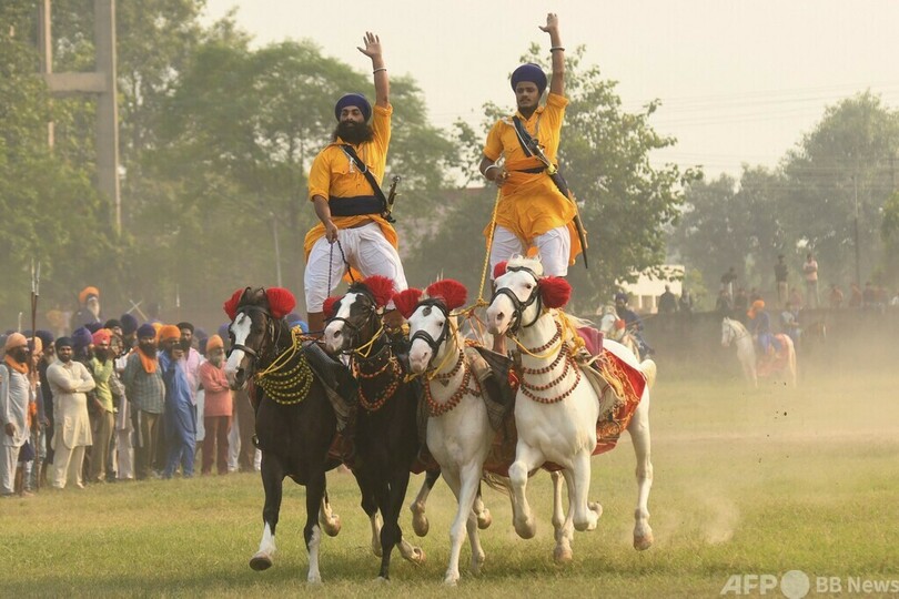 ニュース ライフ 驚異のバランス感覚、シーク教徒の祭典 インド 2021年11月6日 15:56 発信地:アムリツァル/インド [ インド アジア・オセアニア ] このニュースをシェア ‹ › ❮ 14/24 ❯ インド北部アムリツァルで開かれたシーク教の祭り「ファテ・ディバス」で、馬の背に乗って立つシーク教徒の戦士ら(2021年11月5日撮影)。(c)NARINDER NANU / AFP 画像作成中 ! 【11月6日 AFP】インド北部アムリツァル(Amritsar)で5日、シーク教の祭り「ファテ・ディバス(Fateh Divas)」が開かれ、教徒の戦士らが馬の背に乗って立つパフォーマンスを披露した。(c)AFP ライフ 一覧へ> メディア・報道関係・法人の方向け 写真・動画 購入のお問合せ>