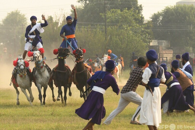 ニュース ライフ 驚異のバランス感覚、シーク教徒の祭典 インド 2021年11月6日 15:56 発信地:アムリツァル/インド [ インド アジア・オセアニア ] このニュースをシェア ‹ › ❮ 4/24 ❯ インド北部アムリツァルで開かれたシーク教の祭り「ファテ・ディバス」で、馬の背に乗って立つシーク教徒の戦士ら(2021年11月5日撮影)。(c)NARINDER NANU / AFP 画像作成中 ! 【11月6日 AFP】インド北部アムリツァル(Amritsar)で5日、シーク教の祭り「ファテ・ディバス(Fateh Divas)」が開かれ、教徒の戦士らが馬の背に乗って立つパフォーマンスを披露した。(c)AFP ライフ 一覧へ> メディア・報道関係・法人の方向け 写真・動画 購入のお問合せ>
