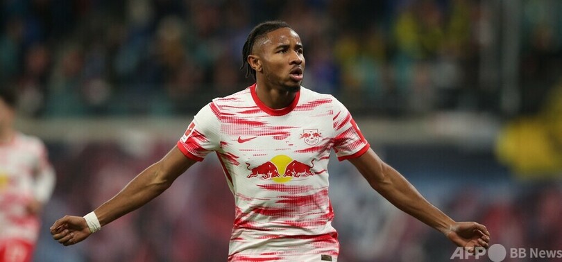 前半にクリストファー・エンクンク(hristopher Nkunku)が相手GKグレゴール・コベル(Gregor Kobel)をかわして無人のゴールにボールを流し込んだライプツィヒは、一度はマルコ・ロイス(Marco Reus)に同点とされたが、その後ヌクンクとドミニク・ショボスライ(Dominik Szoboszlai)の組み立てから最後はユセフ・ポールセン(Yussuf Poulsen)が決勝点を挙げた。(c)AFP/Ryland JAMES