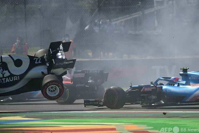 この接触は後方集団にも影響を与え、アルファタウリの角田裕毅(Yuki Tsunoda)とハース(Haas F1 Team)のミック・シューマッハ(Mick Schumacher)はリタイアとなった。(c)AFP