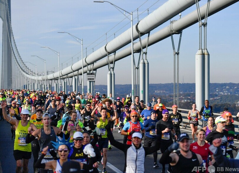 今年が通算50回目となるニューヨークシティマラソンは、昨年は新型コロナウイルスのパンデミック(世界的な大流行)で中止になったため、今回が2年ぶりの開催となり、約3万人のランナーが市内を駆け抜けた。