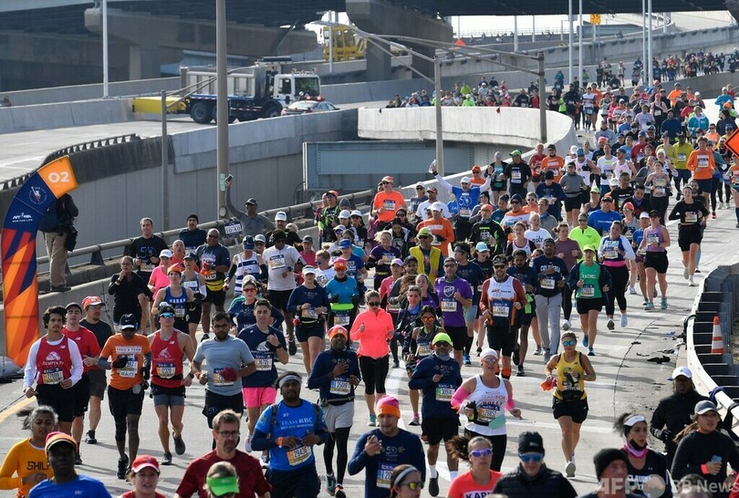 今年が通算50回目となるニューヨークシティマラソンは、昨年は新型コロナウイルスのパンデミック(世界的な大流行)で中止になったため、今回が2年ぶりの開催となり、約3万人のランナーが市内を駆け抜けた。