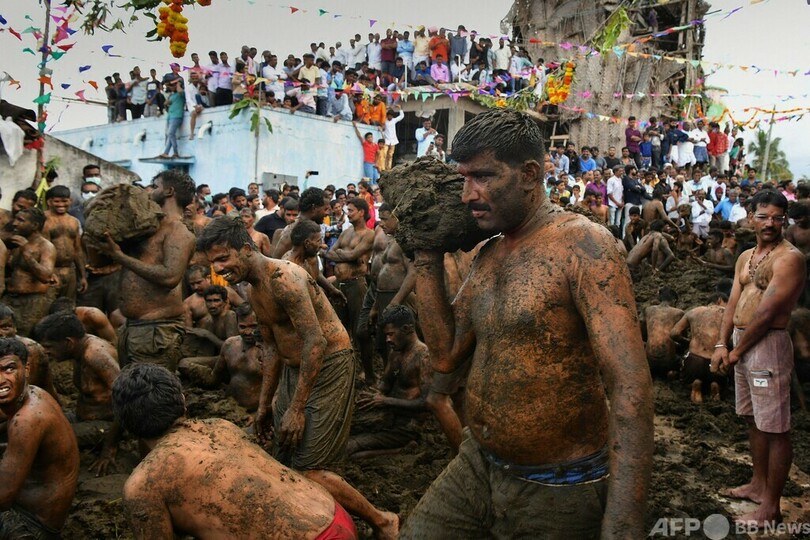 【11月8日 AFP】インド南部のグマタプラ(Gumatapura)村で6日、牛ふんを投げ合う祭り「ゴーレ・ハッバ(Gorehabba)」が行われた。