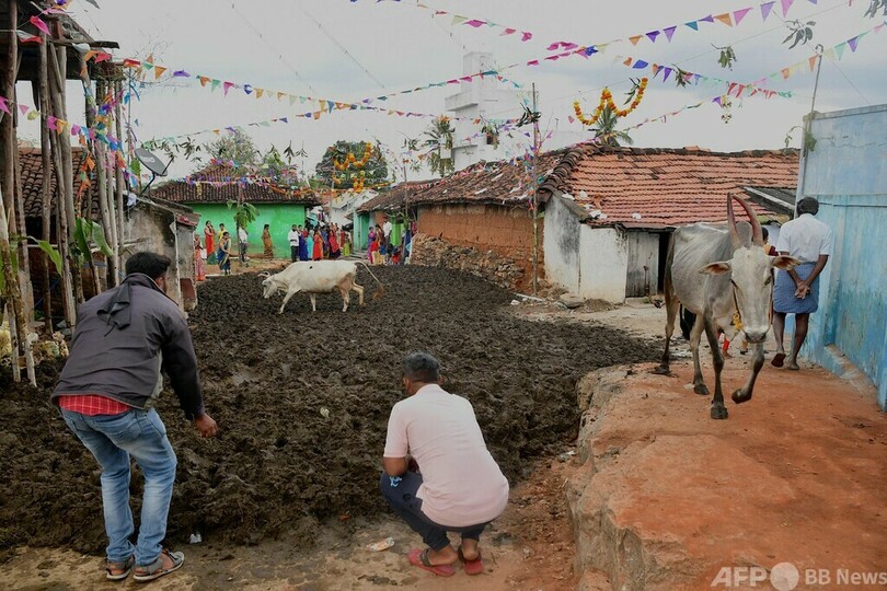 インドで牛ふん投げ合う祭り ヒンズー教の祭典「ディワリ」締めくくる