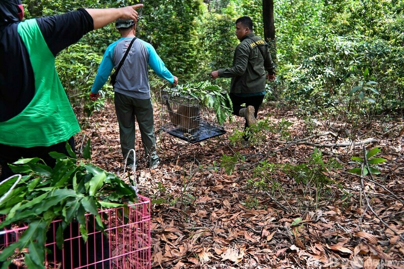 ニュース ライフ SDGs 陸の豊かさも守ろう テナガザル、森に返る インドネシア 2021年11月8日 13:50 発信地:ジャントー/インドネシア [ インドネシア アジア・オセアニア ] このニュースをシェア ‹ › ❮ 11/11 ❯ インドネシア・アチェ州のジャントーで森に返されるテナガザル(2021年11月6日撮影)。(c)CHAIDEER MAHYUDDIN / AFP 画像作成中 ! 【11月8日 AFP】インドネシア・アチェ(Aceh)州のジャントー(Jantho)で6日、2種類のテナガザルが自然資源保全局(BKSDA)により森に返された。(c)AFP ライフ 一覧へ> メディア・報道関係・法人の方向け 写真・動画 購入のお問合せ>