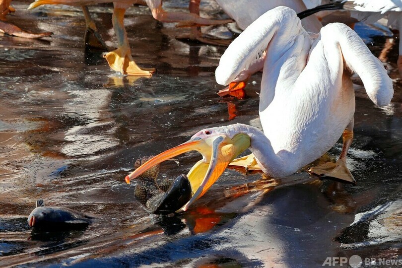 モモイロペリカンの大群、イスラエルで一休み