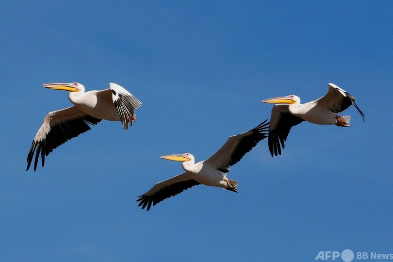 モモイロペリカンの大群、イスラエルで一休み