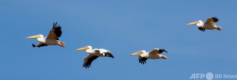 モモイロペリカンの大群、イスラエルで一休み