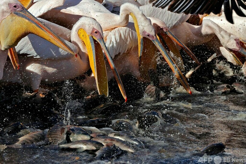 モモイロペリカンの大群、イスラエルで一休み