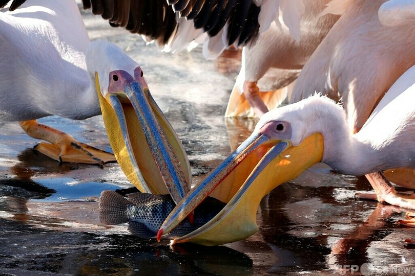 モモイロペリカンの大群、イスラエルで一休み