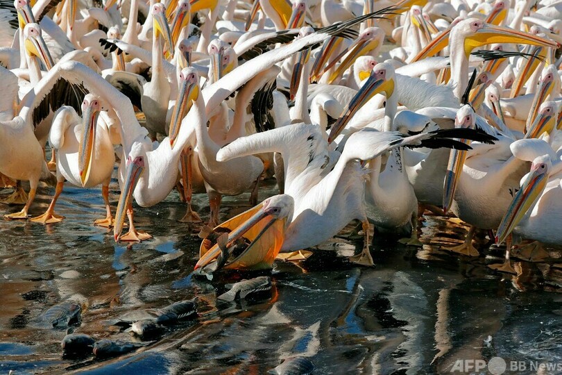 モモイロペリカンの大群、イスラエルで一休み