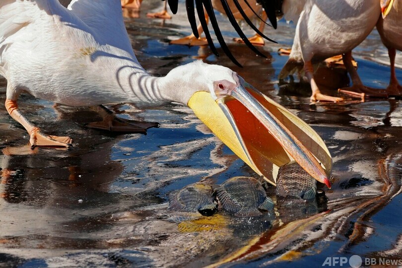モモイロペリカンの大群、イスラエルで一休み
