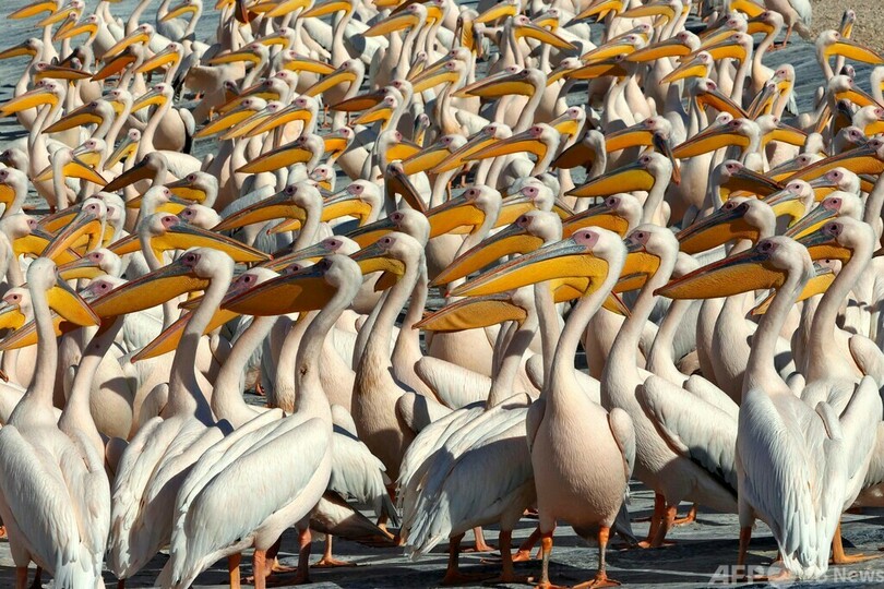 モモイロペリカンの大群、イスラエルで一休み