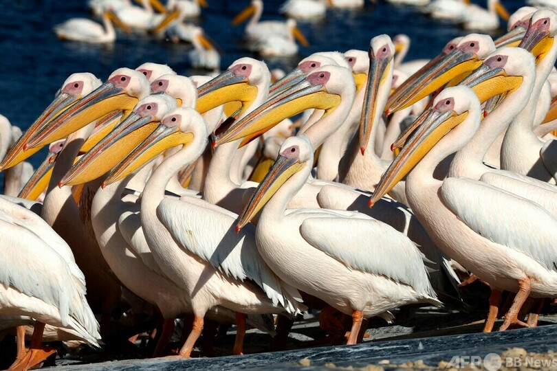 モモイロペリカンの大群、イスラエルで一休み
