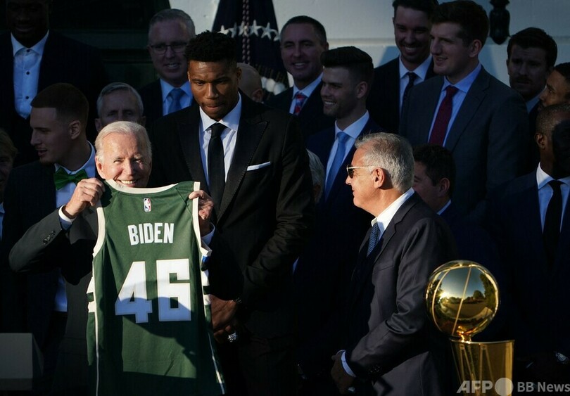【11月9日 AFP】米プロバスケットボール(NBA)の王者ミルウォーキー・バックス(Milwaukee Bucks)が8日、ホワイトハウス(White House)にジョー・バイデン(Joe Biden)米大統領を表敬訪問した。前政権下では優勝チームによる訪問が途絶えており、同リーグでは5年ぶりの恒例行事復活となった。