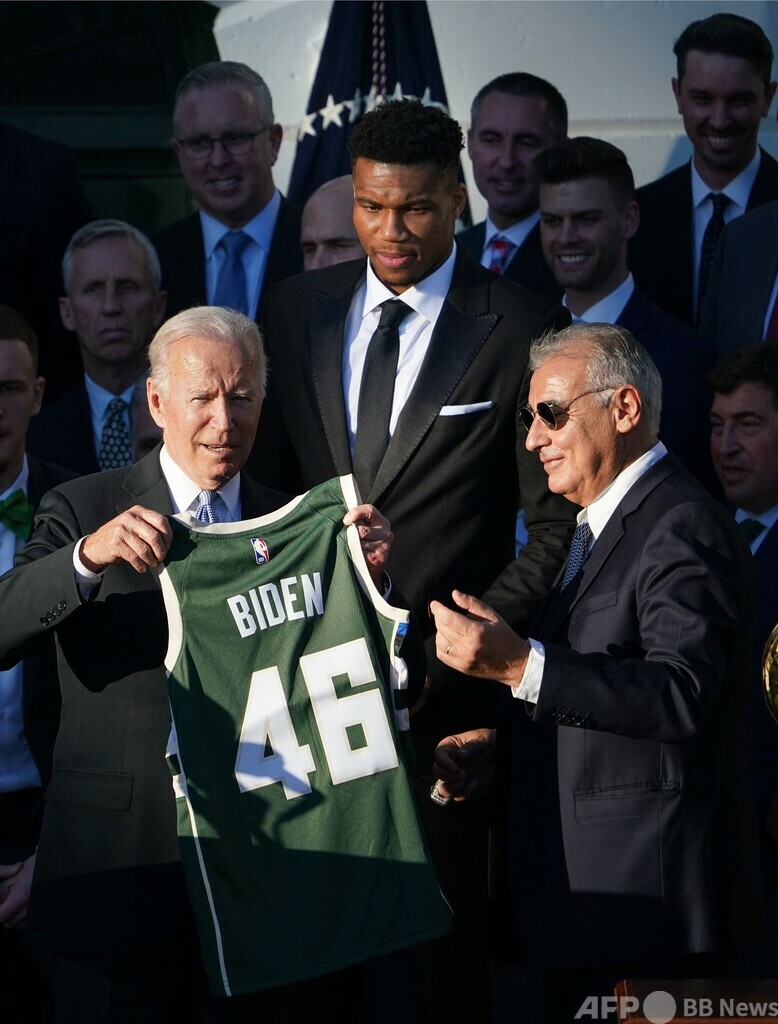 【11月9日 AFP】米プロバスケットボール(NBA)の王者ミルウォーキー・バックス(Milwaukee Bucks)が8日、ホワイトハウス(White House)にジョー・バイデン(Joe Biden)米大統領を表敬訪問した。前政権下では優勝チームによる訪問が途絶えており、同リーグでは5年ぶりの恒例行事復活となった。