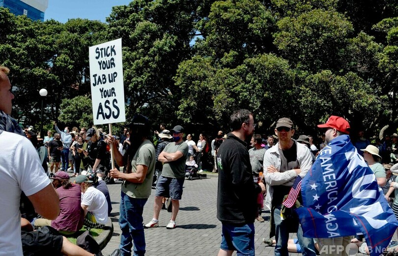 【11月9日 AFP】ニュージーランドの首都ウェリントンで9日、新型コロナウイルスの感染防止策に抗議し、約3000人が議会まで行進した。