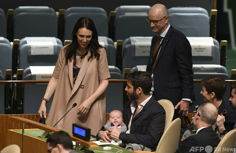 アーダーン首相は2018年にニーブちゃんを出産。在職中の首相の出産は、パキスタンのベナジル・ブット(Benazir Bhutto)氏に次いで史上2人目となった。米ニューヨークの国連総会(UN General Assembly)の議場に、ニーブちゃんを連れて出席したこともある。(c)AFP