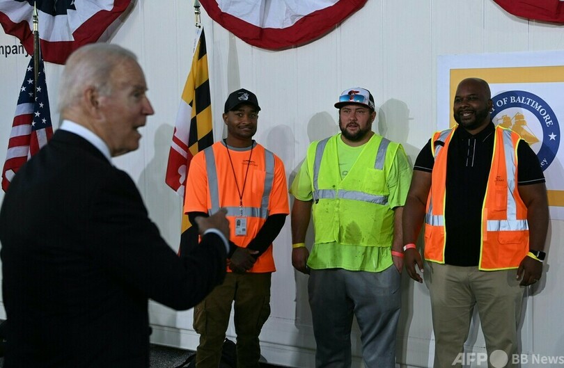 バイデン氏は「きょう発表された経済指標によると、失業率は低下が続いているものの、消費者物価は高止まりしている」と東部メリーランド州ボルティモア(Baltimore)の港で演説した。