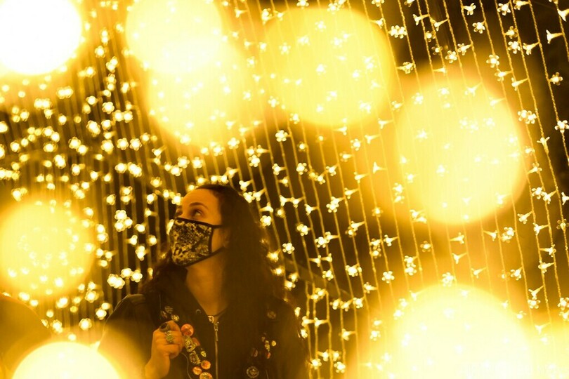 【11月12日 AFP】米カリフォルニア州のロサンゼルス郡立樹木・植物園(Los Angeles County Arboretum and Botanic Garden)で11日、イルミネーション「ライトスケープ(Lightscape)」を楽しむ人々の姿が見られた。全長1マイル(約1.6キロ)の道沿いに光と色、音を使ったインスタレーションが設置された。(c)AFP