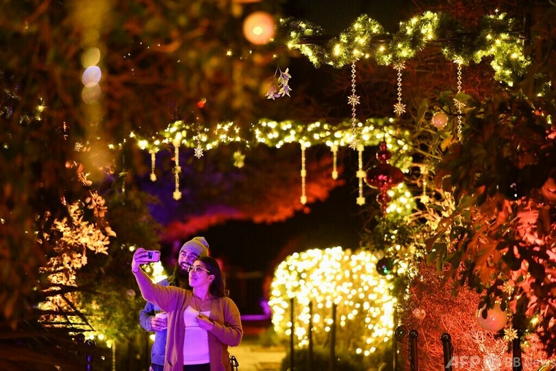 【11月12日 AFP】米カリフォルニア州のロサンゼルス郡立樹木・植物園(Los Angeles County Arboretum and Botanic Garden)で11日、イルミネーション「ライトスケープ(Lightscape)」を楽しむ人々の姿が見られた。全長1マイル(約1.6キロ)の道沿いに光と色、音を使ったインスタレーションが設置された。(c)AFP