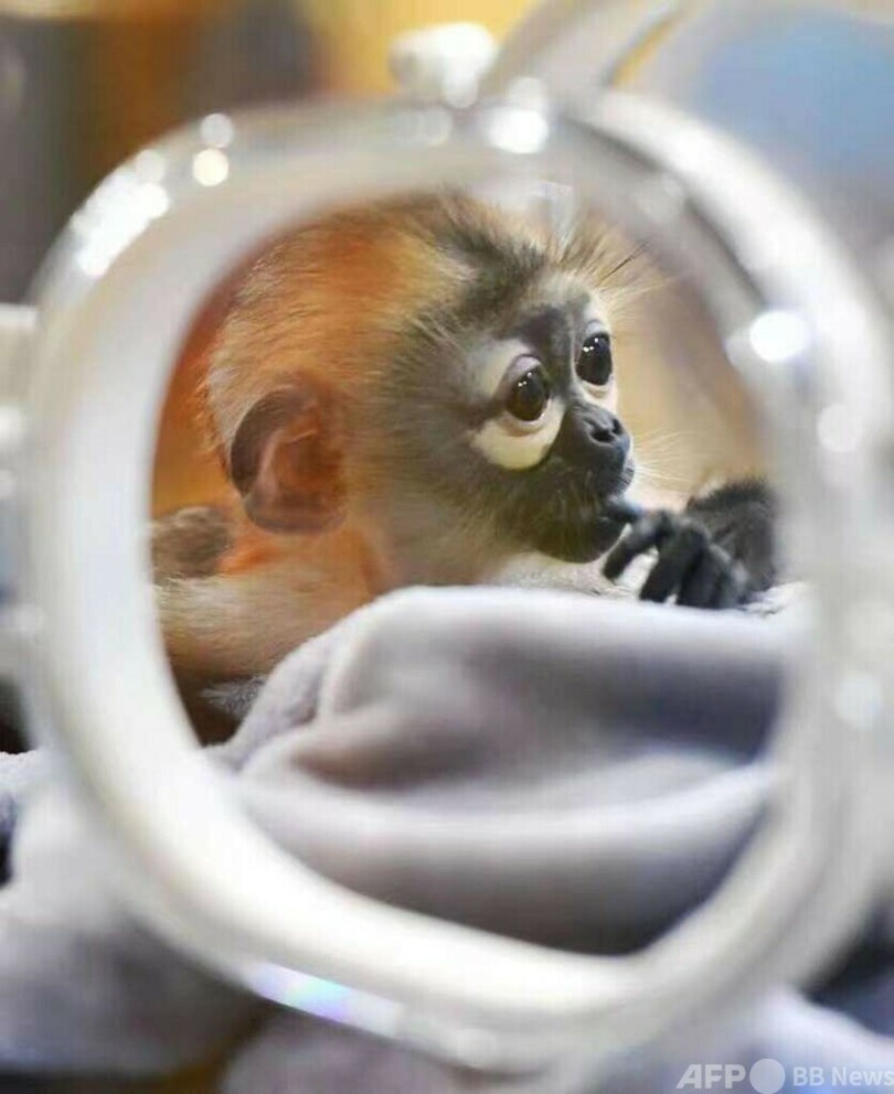 クロアシドゥクラングールの赤ちゃんは生存率が低く、中国国内では関連する研究や成功事例が極めて少ない状態でした。霊長類研究センターは、クロアシドゥクラングールと食習慣が近く、四川省(Sichuan)などに生息する「キンシコウ」の繁殖経験を参考にして、クロアシドゥクラングールの科学的な保育方法を模索してきました。例えばクロアシドゥクラングールの赤ちゃんの消化管内の微生物生態系の安定を守り胃や腸の疾患を防ぐために、毎回の授乳前には温水で口腔をきれいにしておきます。また、乳糖不耐症を避けるため、ミルクに乳糖分解酵素や消化酵素などを配合しています。(c)CGTN Japanese/AFPBB News