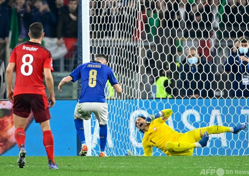 終盤にイタリアは、ドメニコ・ベラルディ(Domenico Berardi)がウリセス・ガルシア(Ulisses Garcia)にペナルティーエリア内で倒されると、ビデオ・アシスタント・レフェリー(VAR)のレビューによりPKを獲得。しかし、9月の対戦でもPKを外していたジョルジーニョがこれを枠に飛ばせなかった。同選手がクラブ戦と代表戦でPKを外したのは、昨季開幕から数えて6度目となった。