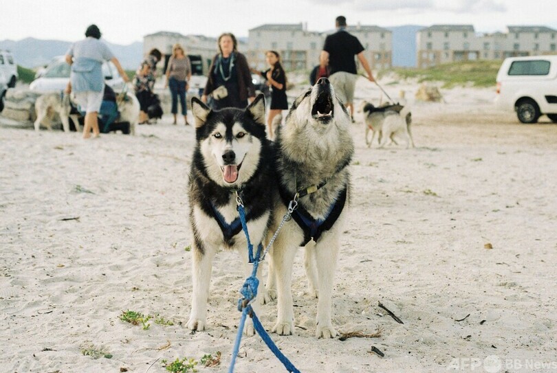 【11月22日 AFP】南アフリカ・ケープタウン郊外のミューゼンバーグ(Muizenberg)は、金色に輝く砂浜、カラフルなビーチ小屋、最高のサーフィン体験など見どころ満載の人気スポットだが、ここにはさらに唯一無二の名物がある。最大30匹のハスキー犬が引く犬ぞりだ。